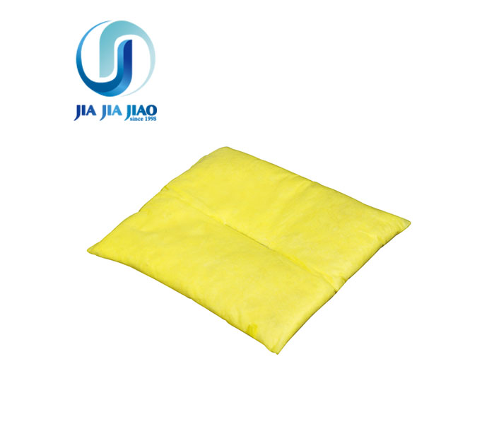 The hazchem absorbent pillows absorb much more than a conventional pad due to the large internal surface area filled with loose pp scraps inside the pillow.